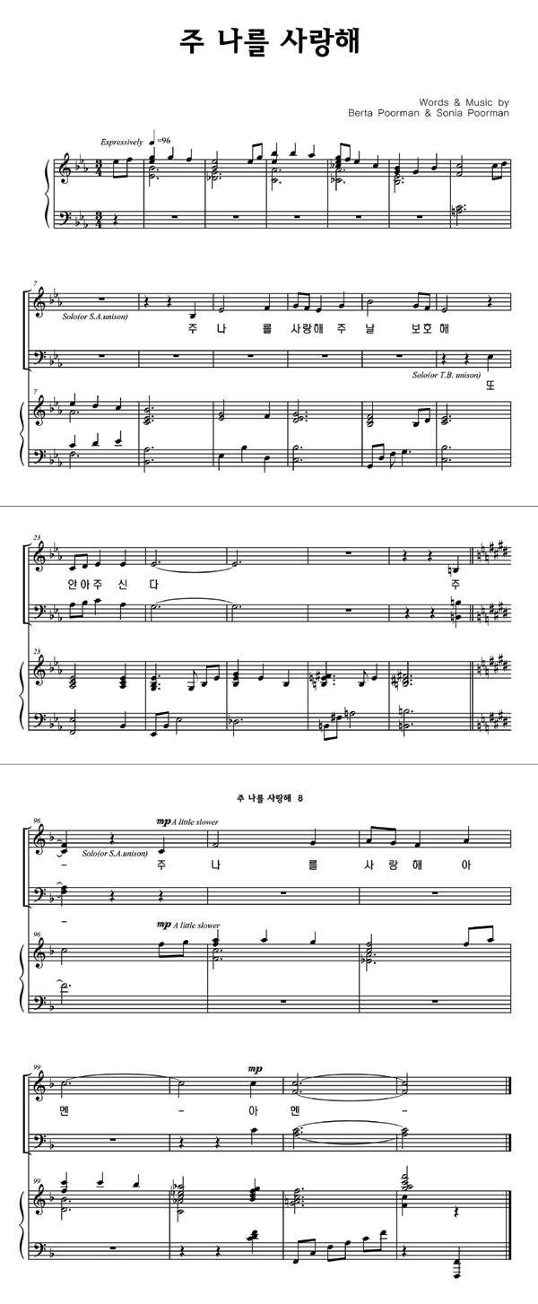 '주 나를 사랑해' 의 다른 악보형식