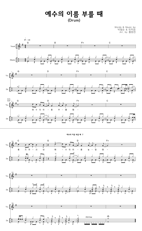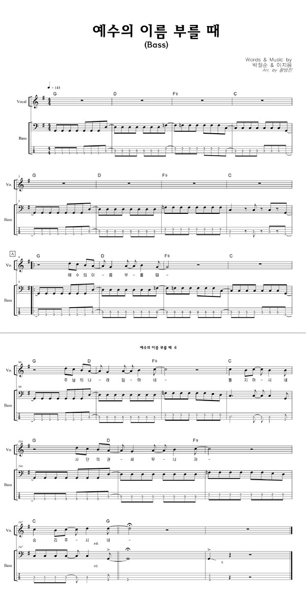 | 예수의 이름 부를 때 큰글씨 | 단선 |