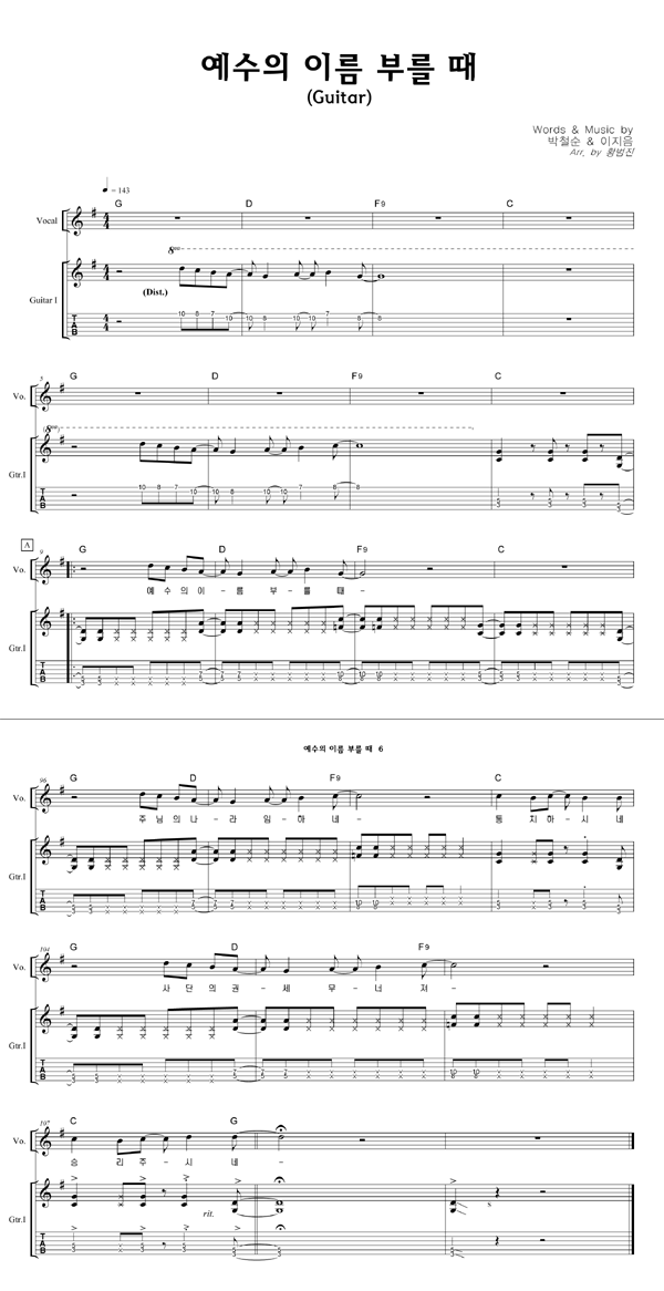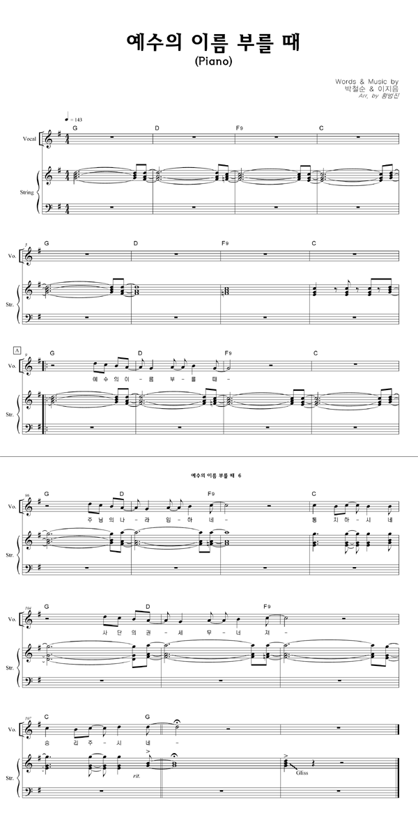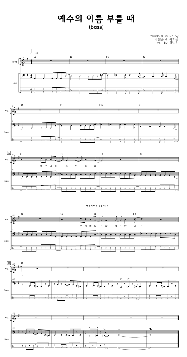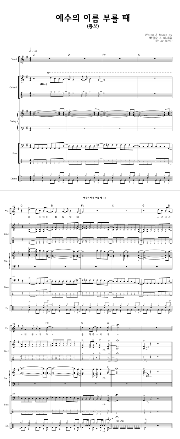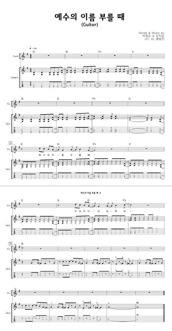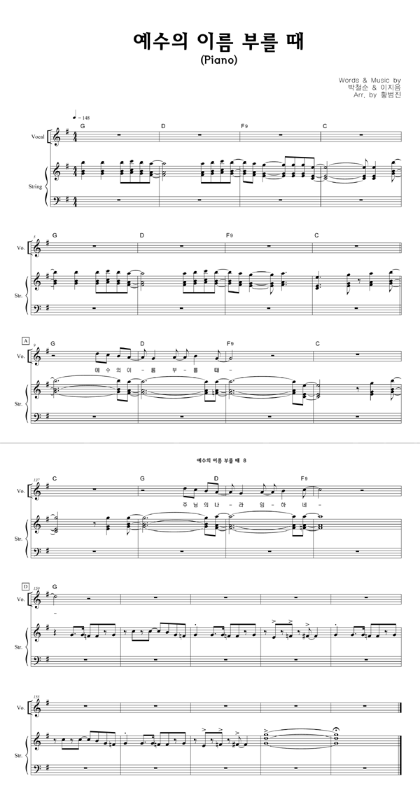 '예수의 이름 부를 때' 의 다른 악보형식