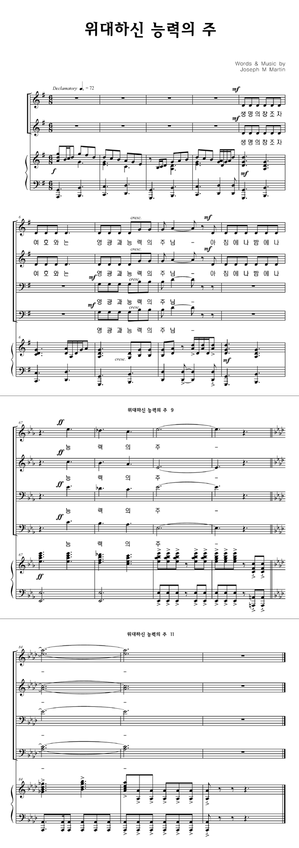 '위대하신 능력의 주' 의 다른 악보형식