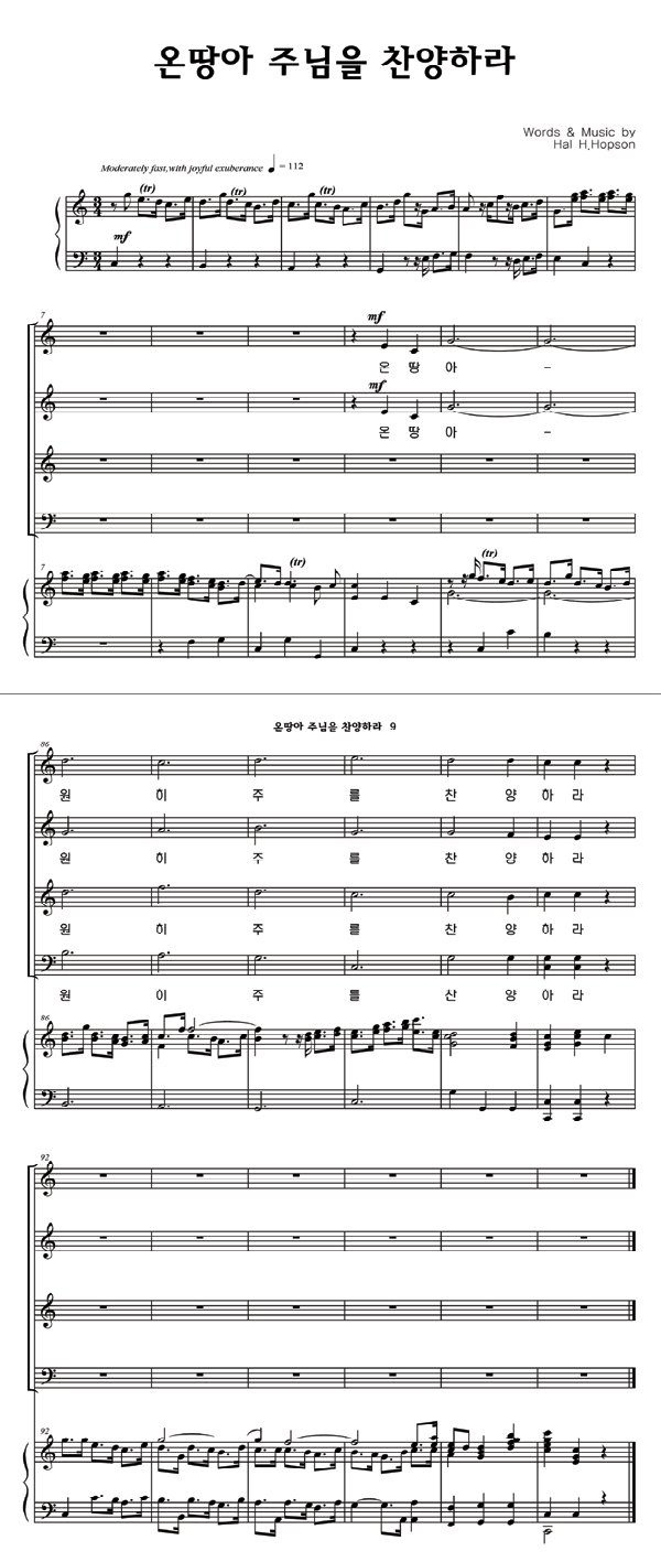 '온땅아 주님을 찬양하라' 의 다른 악보형식