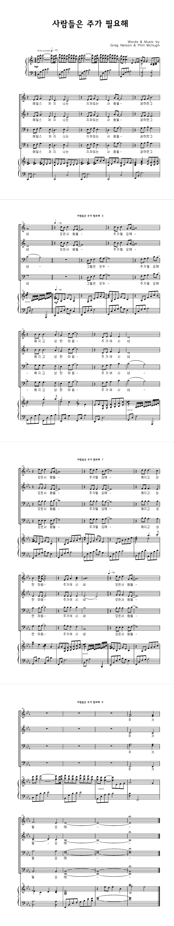 '사람들은 주가 필요해' 의 다른 악보형식