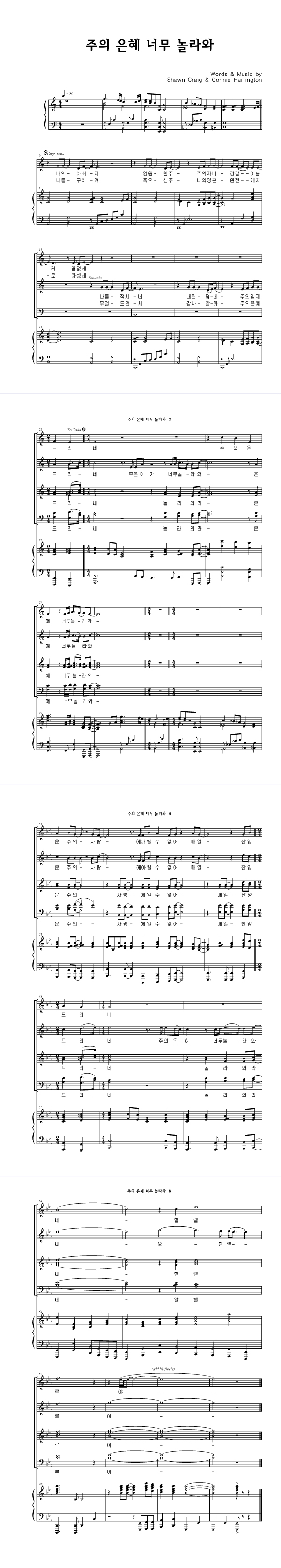 '주의 은혜 너무 놀라와' 의 다른 악보형식