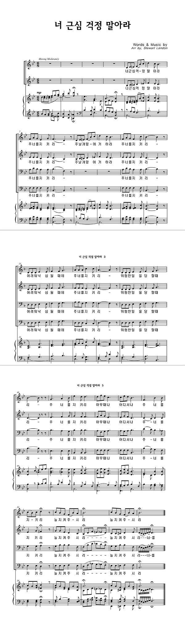 | 너 근심 걱정 말아라 큰글씨 | 성가 4부 + 피아노 반주 |