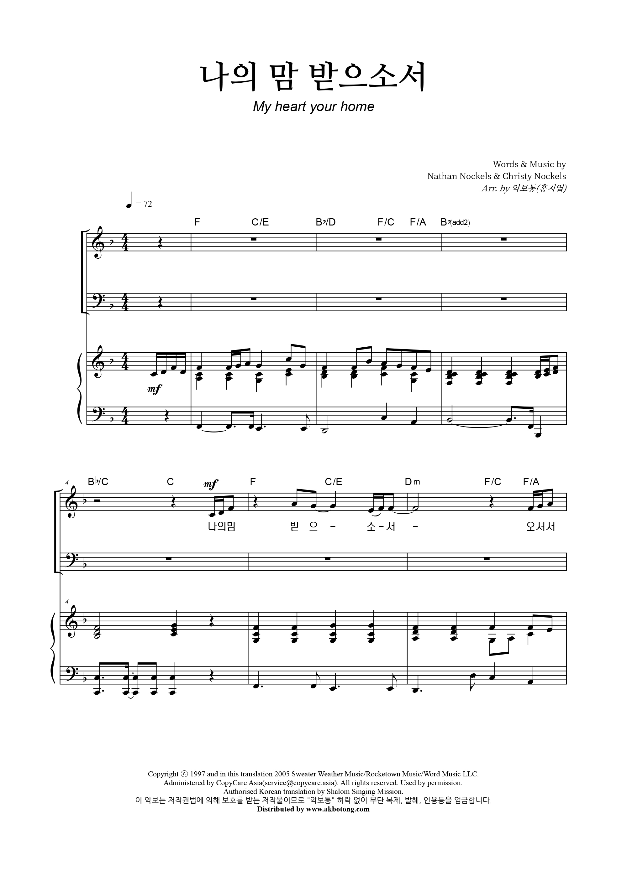 | 나의 맘 받으소서 | 성가 4부 + 피아노 반주 |