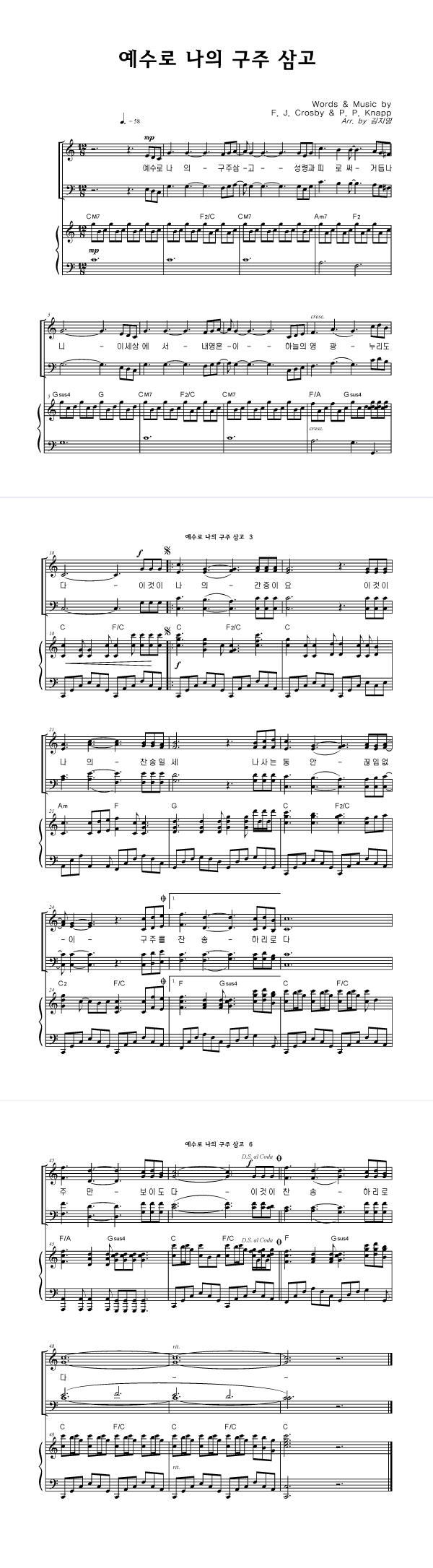 | 예수로 나의 구주 삼고 | 성가 3부 + 피아노 반주 |