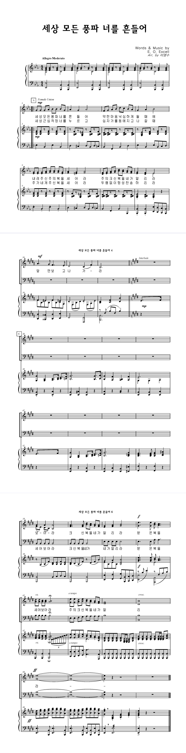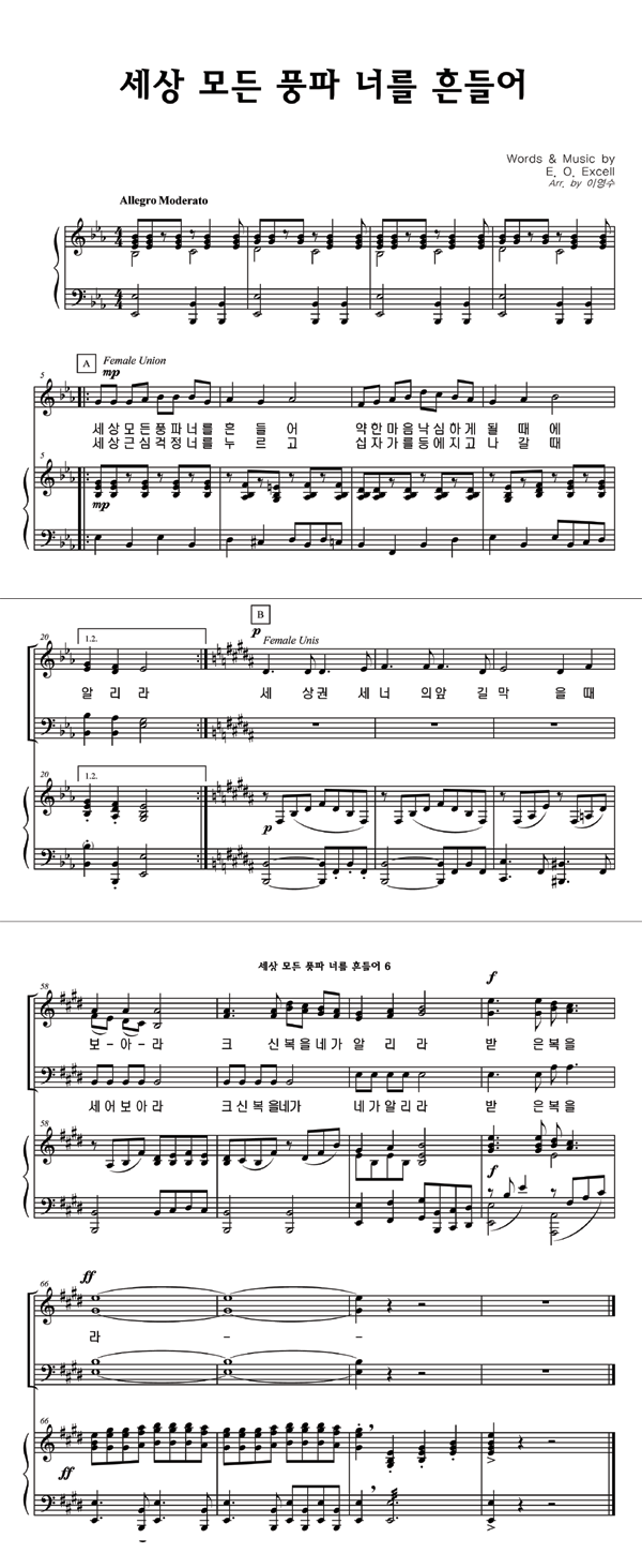'세상 모든 풍파 너를 흔들어' 의 다른 악보형식