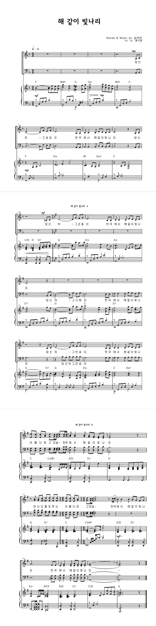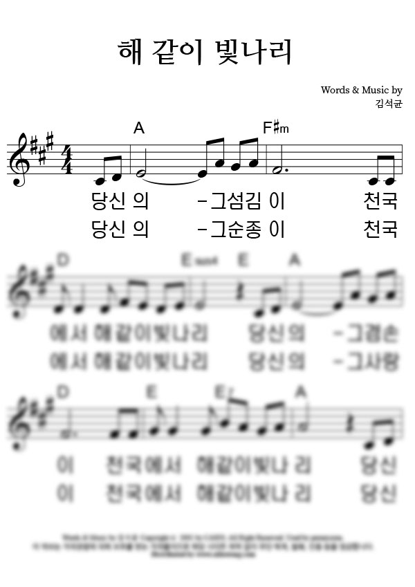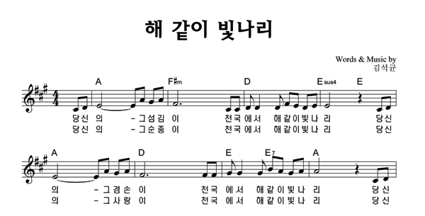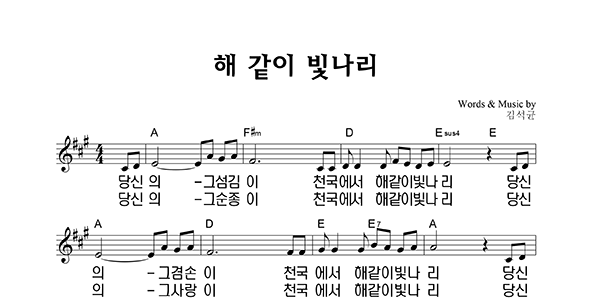 '해같이 빛나리' 의 다른 악보형식