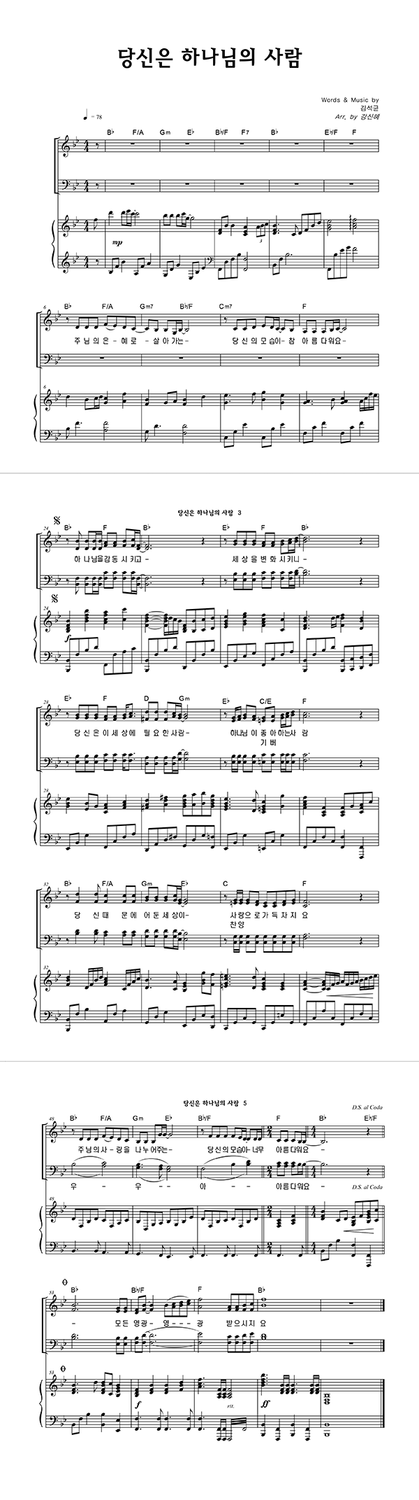 | 당신은 하나님의 사람 | 성가 3부 + 피아노 반주 |