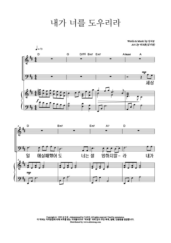 | 내가 너를 도우리라 | 성가 3부 + 피아노 반주 |
