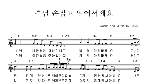'김석균 복음성가 작곡집 Vol.12 - 주님 손잡고 일어서세요' 의 다른 악보