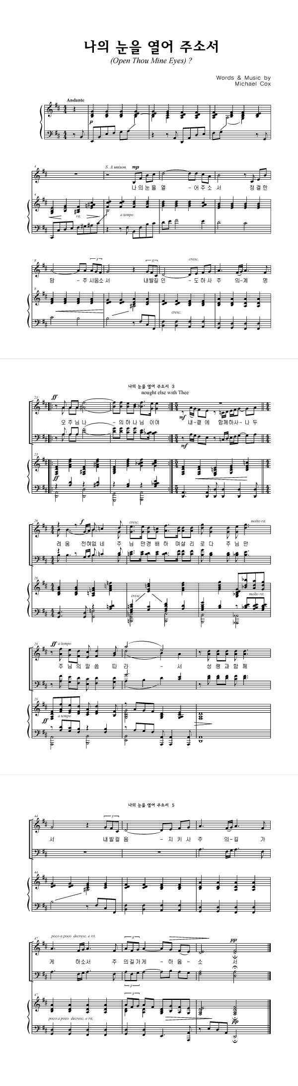 '나의 눈을 열어 주소서' 의 다른 악보형식