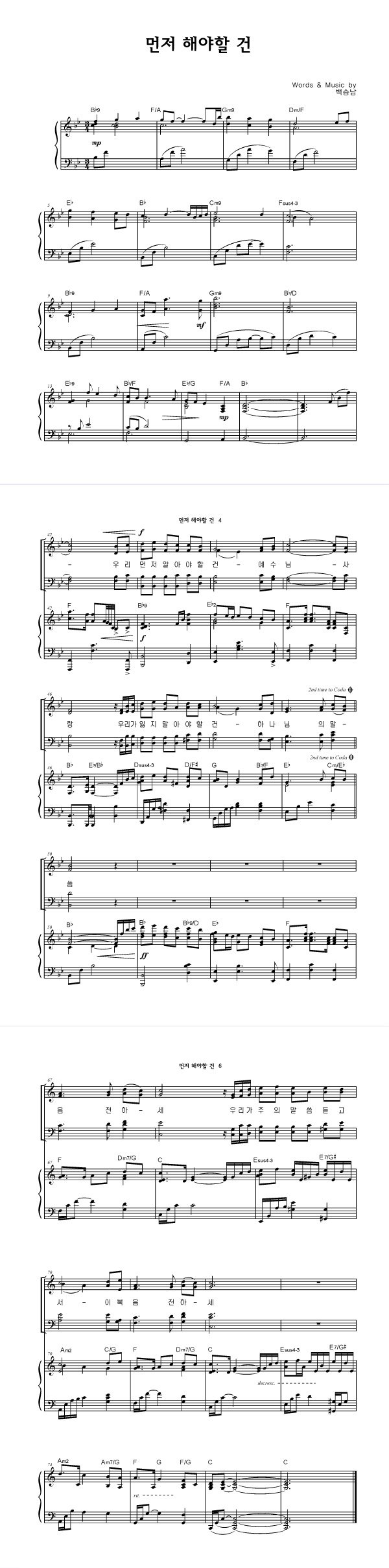 | 먼저 해야 할 건 | 성가 4부 + 피아노 반주 |