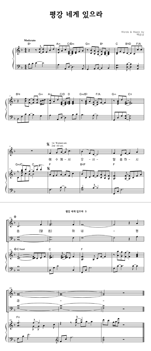 | 평강 네게 있으라 | 성가 4부 + 피아노 반주 |