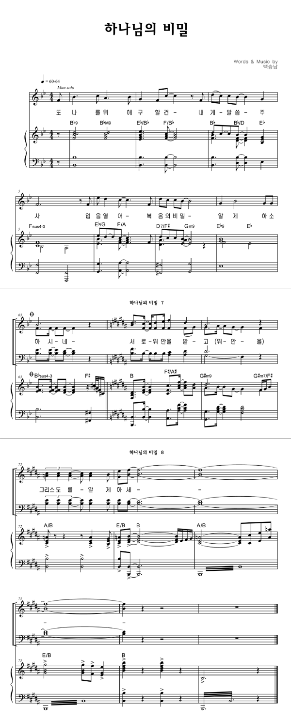 | 하나님의 비밀 | 성가 4부 + 피아노 반주 |