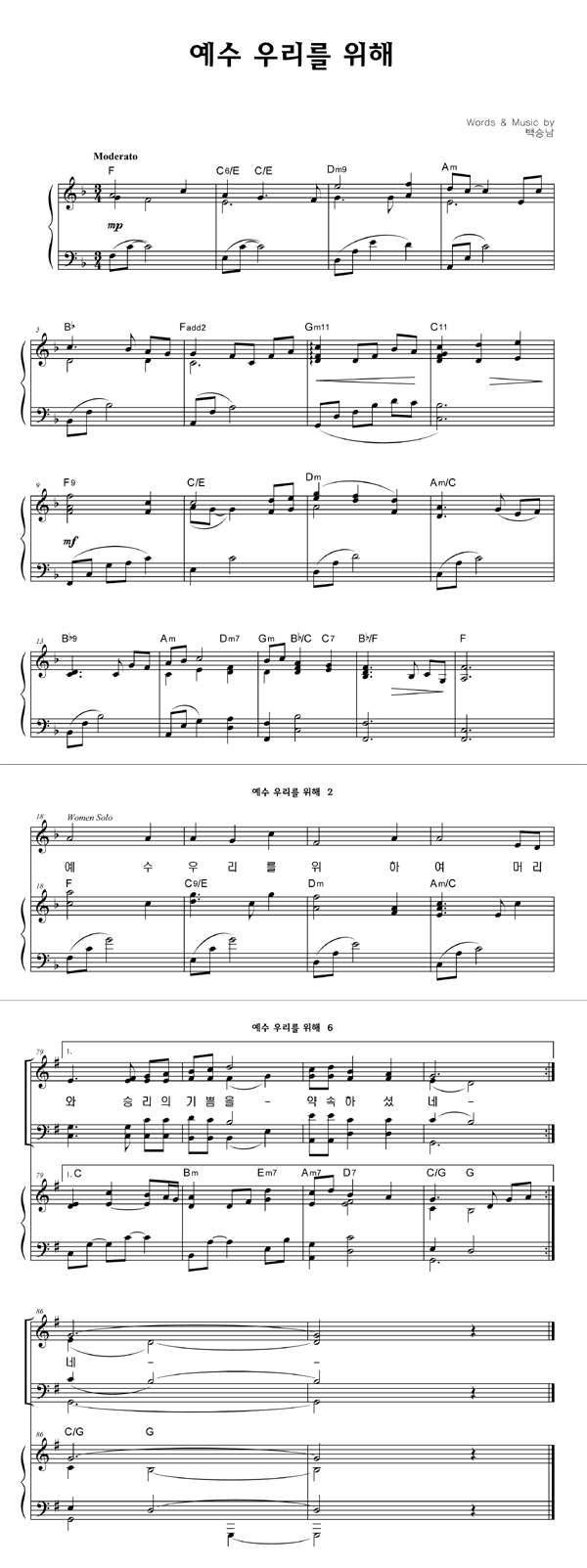 | 예수 우리를 위해 | 성가 4부 + 피아노 반주 |