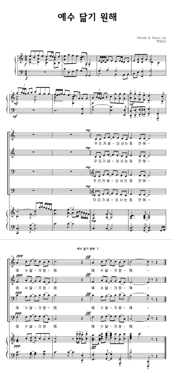 | 예수 닮기 원해 | 성가 4부 + 피아노 반주 |