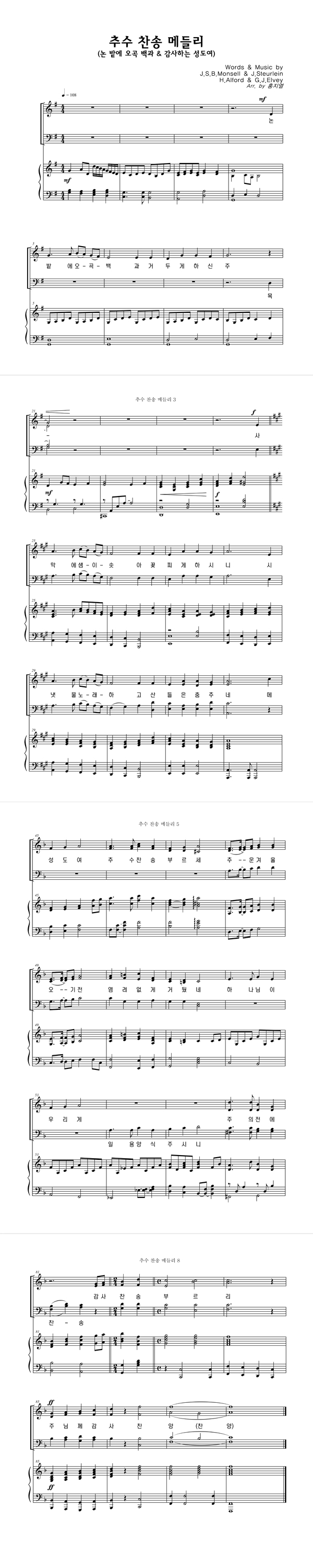 '추수 찬송 메들리 (논밭에 오곡백과, 감사하는 성도여)' 의 다른 악보형식