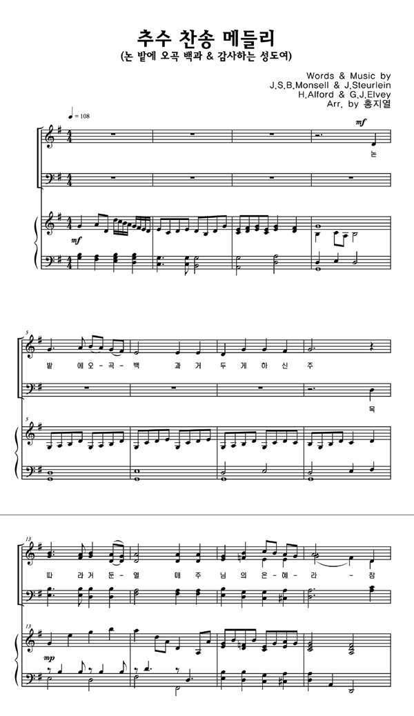 | 추수 찬송 메들리 (논밭에 오곡백과, 감사하는 성도여) | 성가 4부 + 피아노 반주 |
