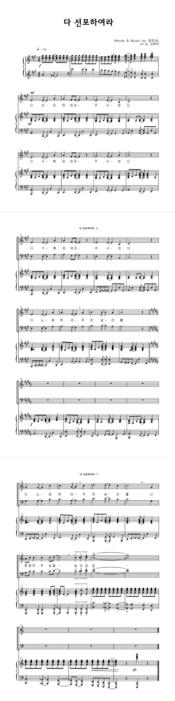 | 다 선포하여라 | 성가 4부 + 피아노 반주 |