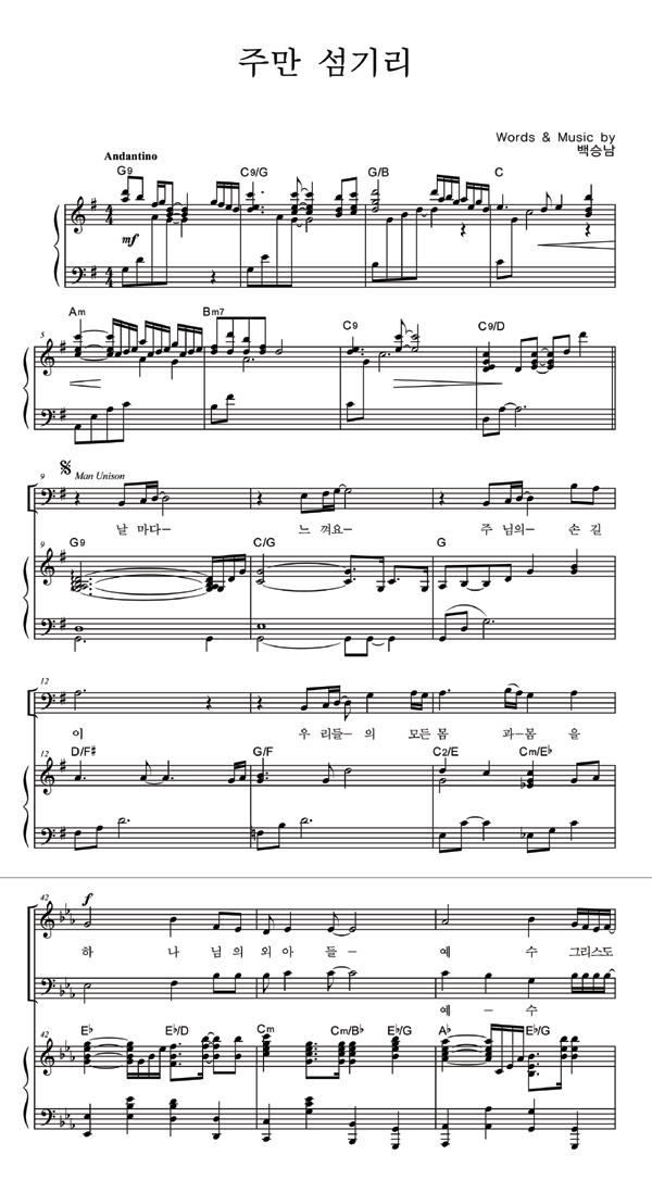 | 주만 섬기리 | 성가 2부 + 피아노 반주 |