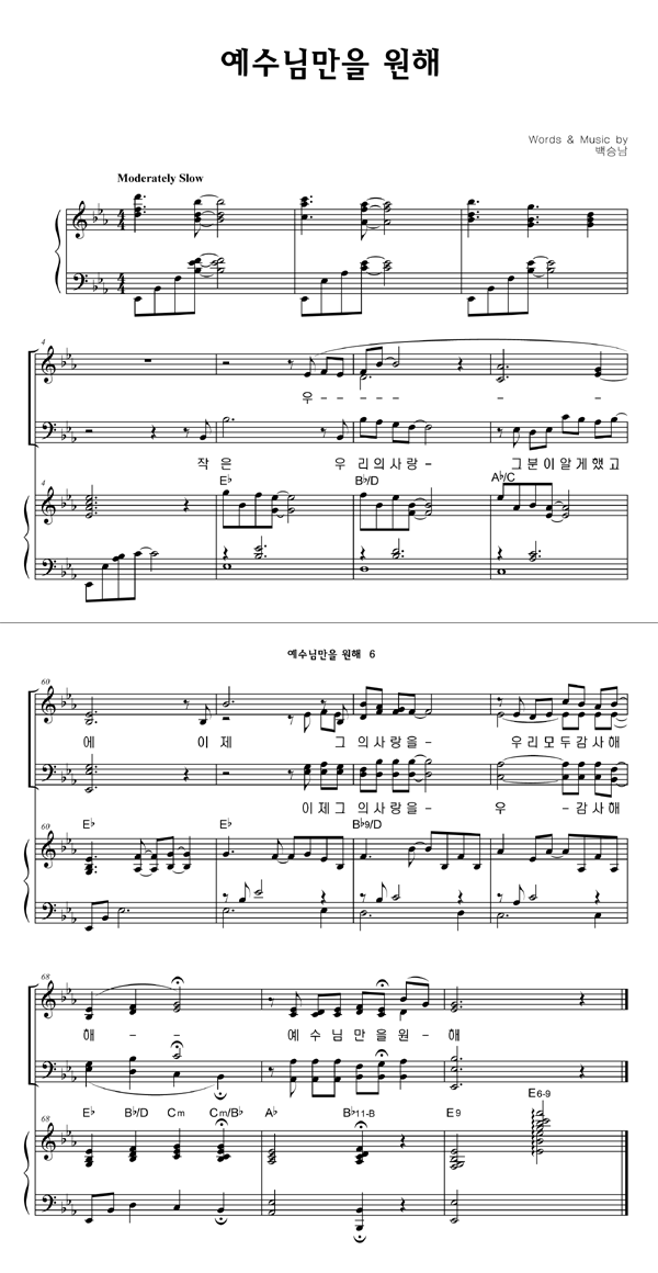 | 예수님만을 원해 | 성가 4부 + 피아노 반주 |