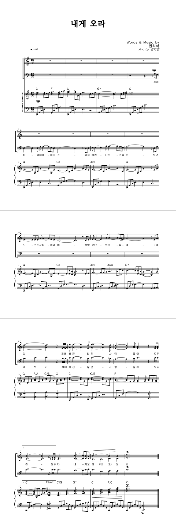 | 내게 오라 | 성가 2부 + 피아노 반주 |