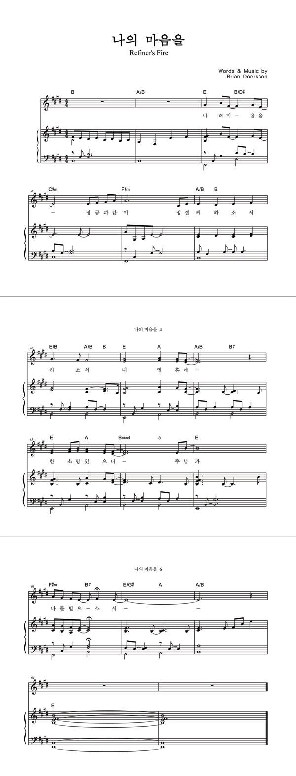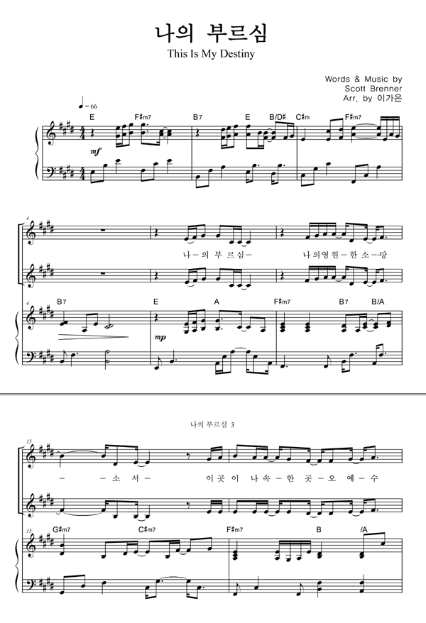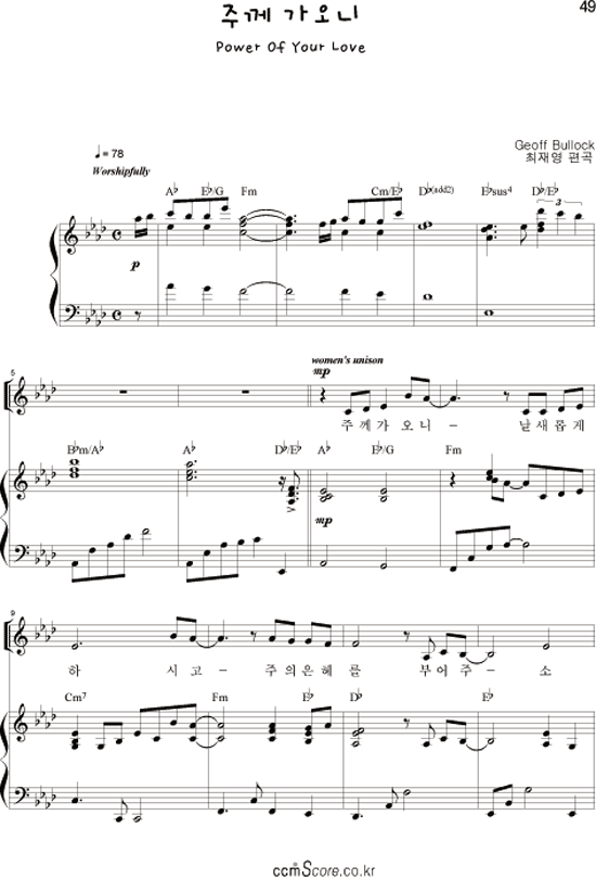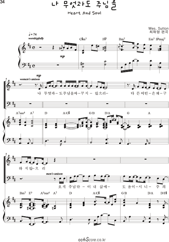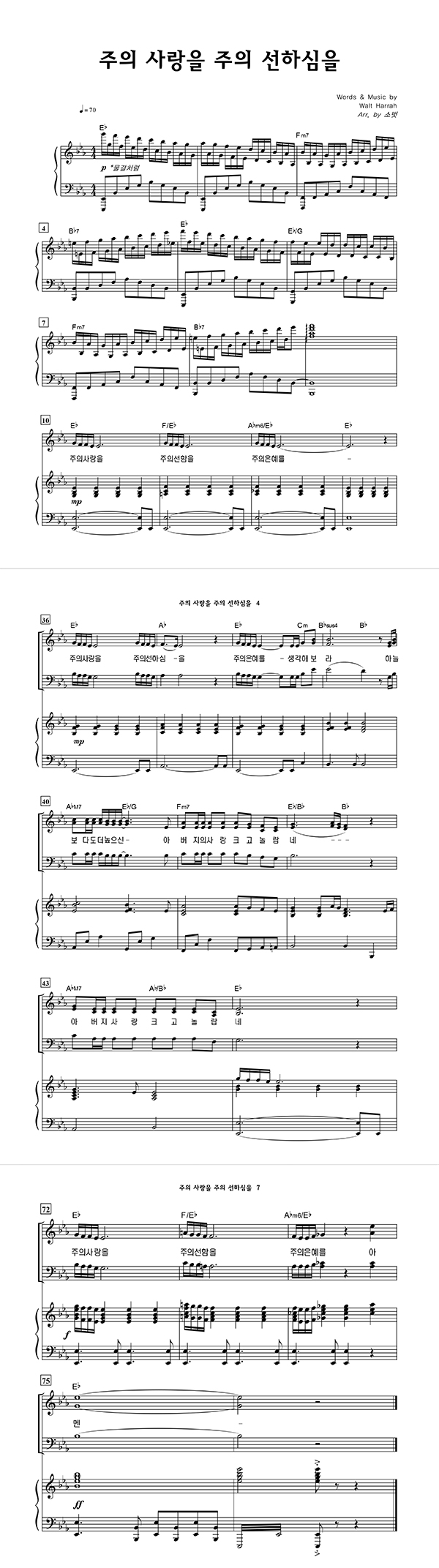 | 주를 향한 나의 사랑을 | 성가 3부 + 피아노 반주 |