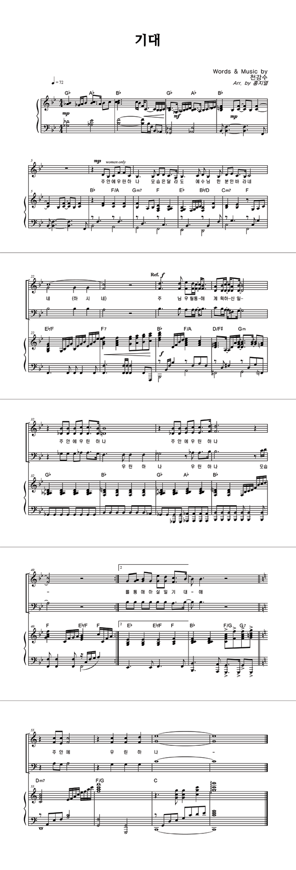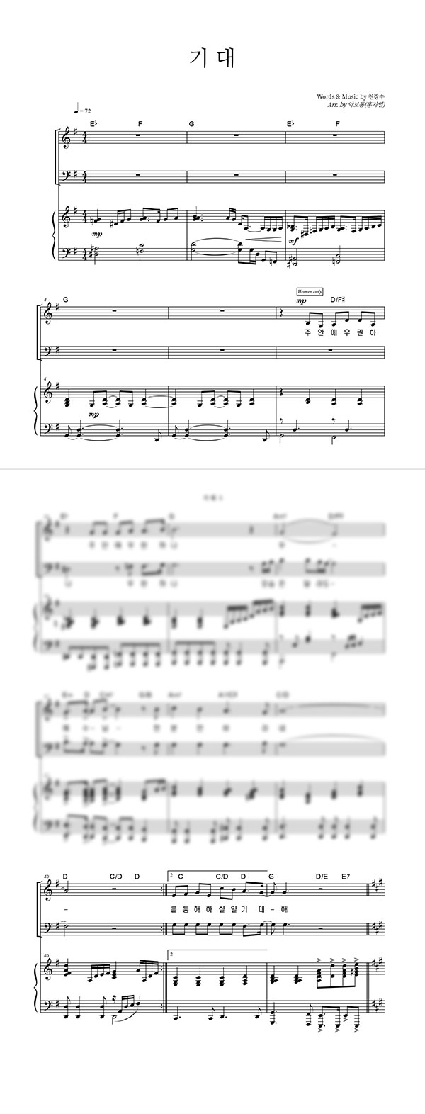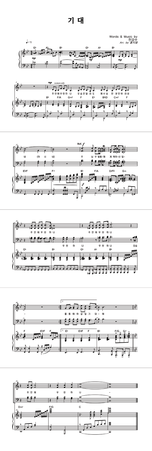 | 기대 | 성가 2부 + 여성 |