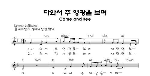 | 주께 가오니 | 성가 2부 + 피아노 반주 |