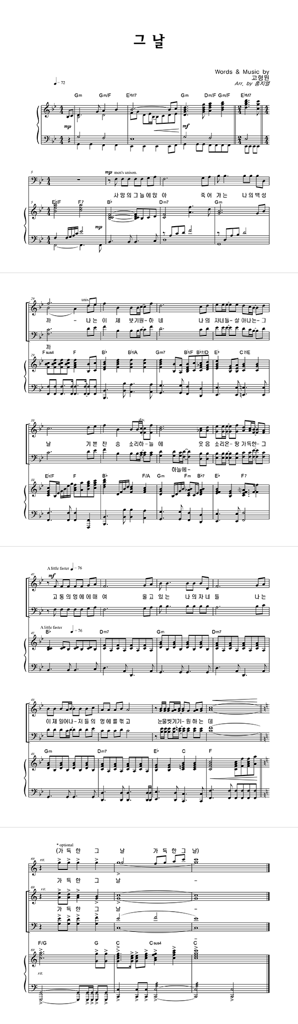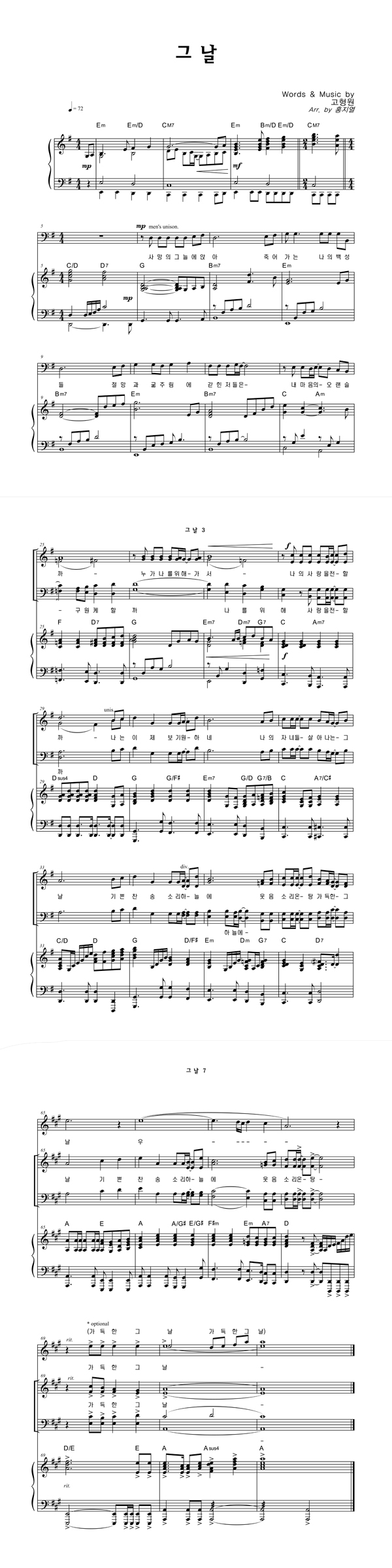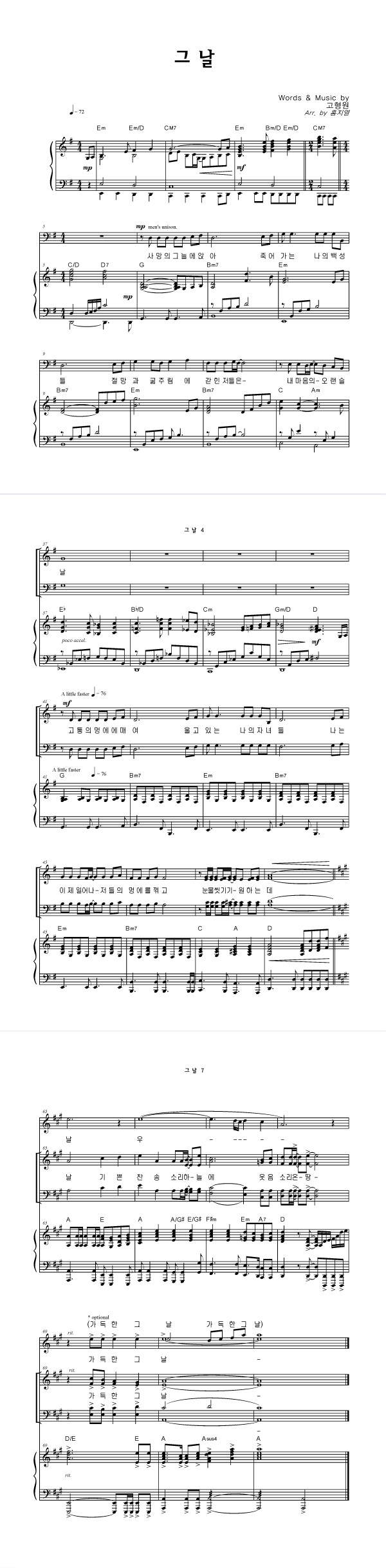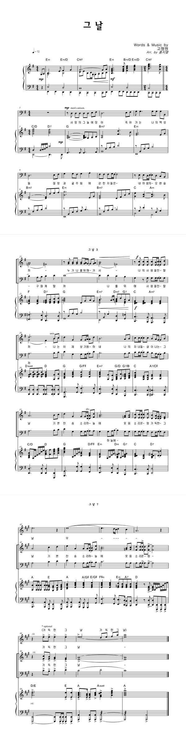 | 그 날 | 성가 3부 + 피아노 반주 |