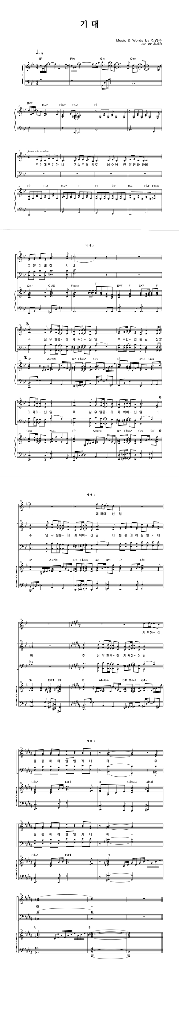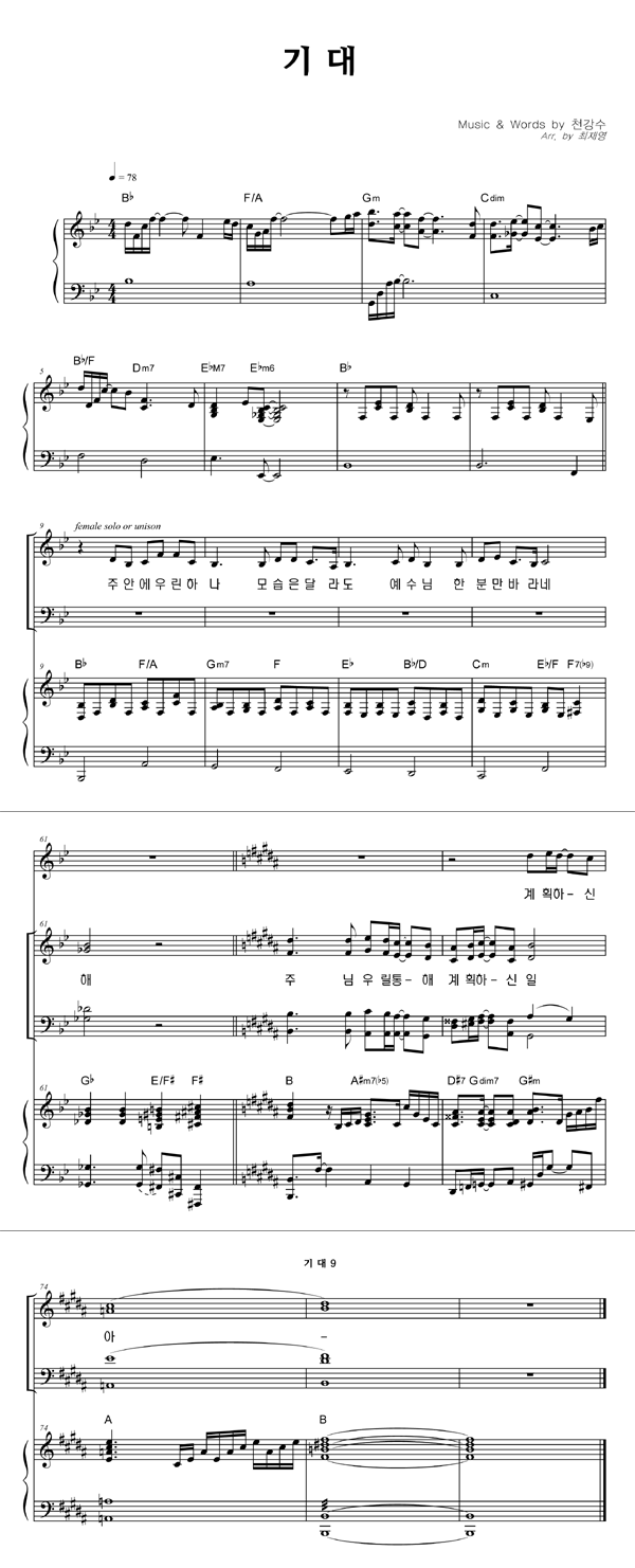 | 기대 | 성가 4부 + 피아노 반주 |