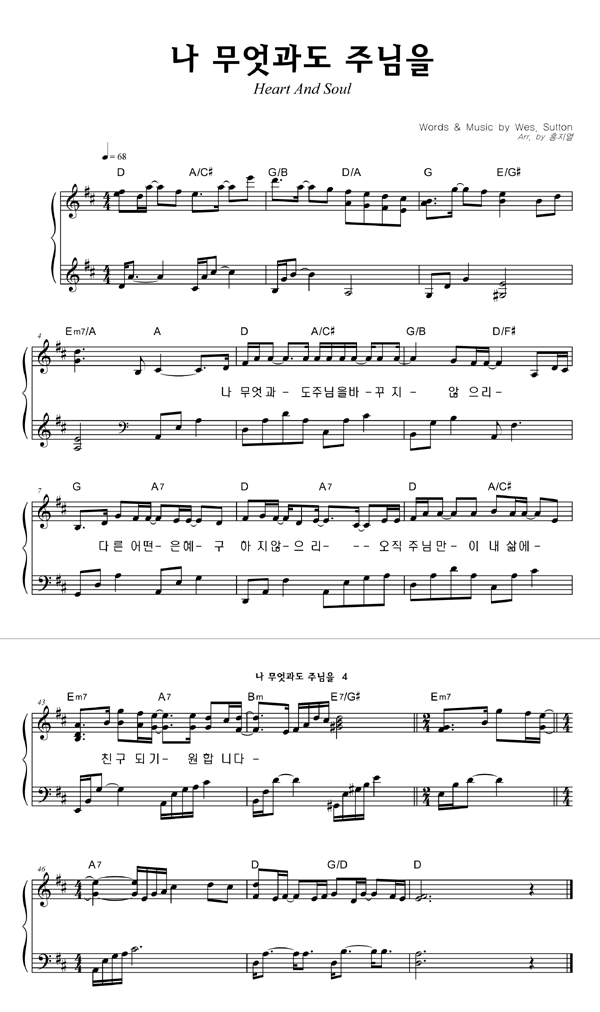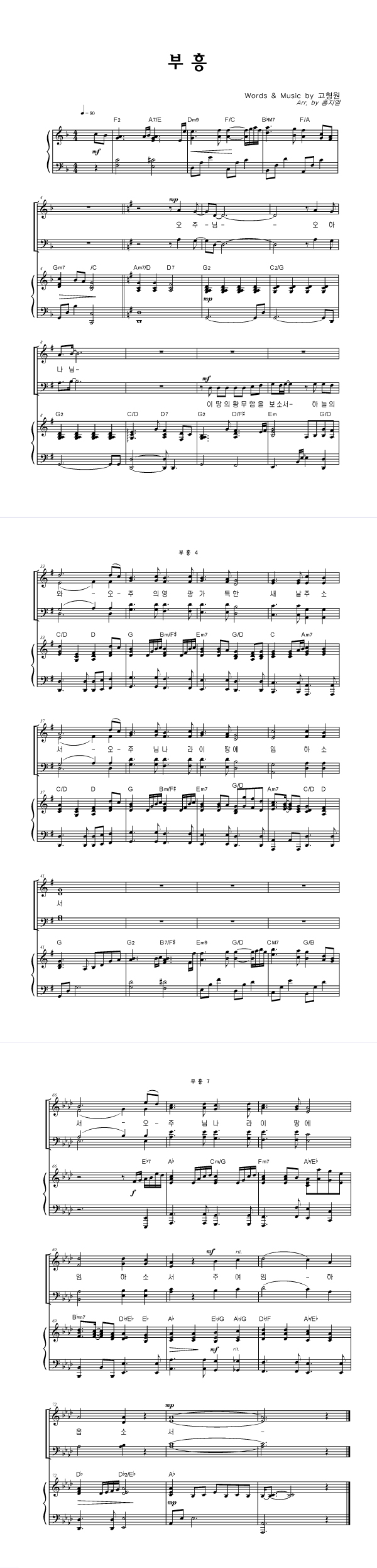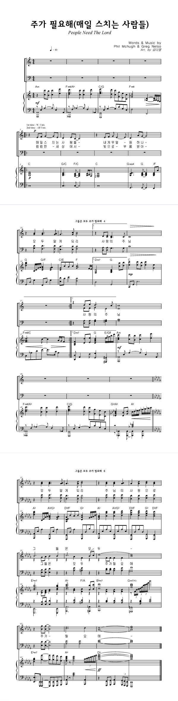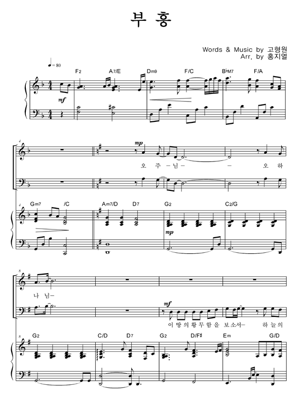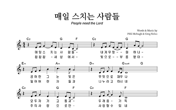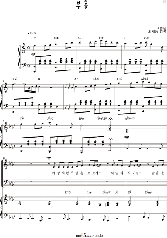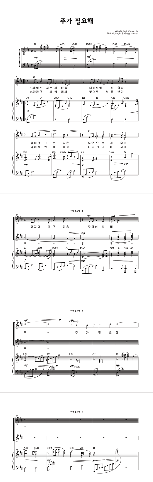 | 주가 필요해 | 성가 2부 + 피아노 반주 |