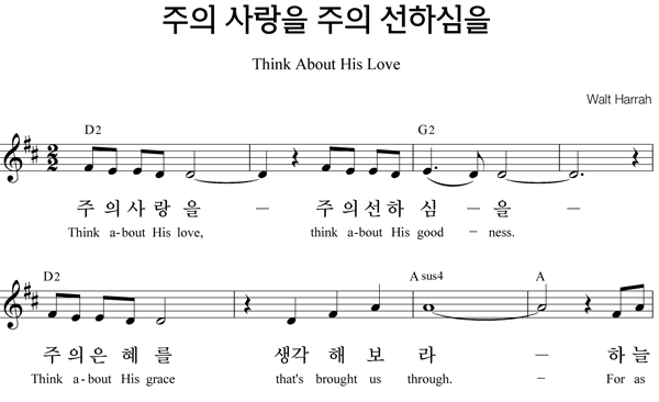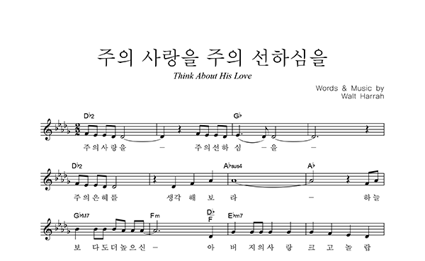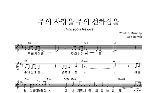 | 주의 사랑을 주의 선하심을 | 성가 2부 + 피아노 반주 |