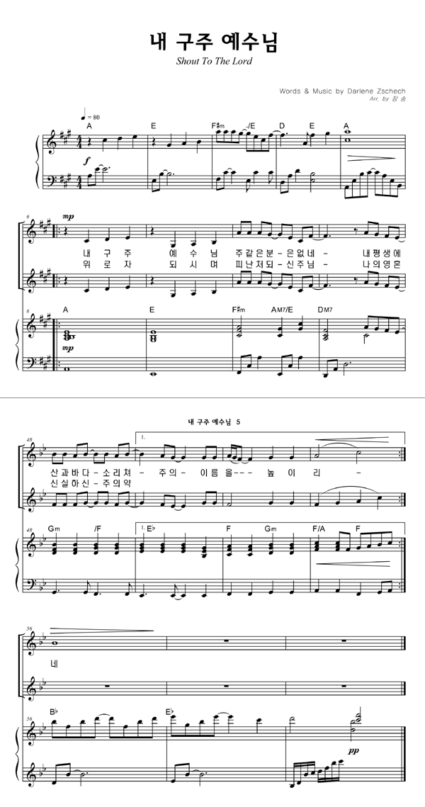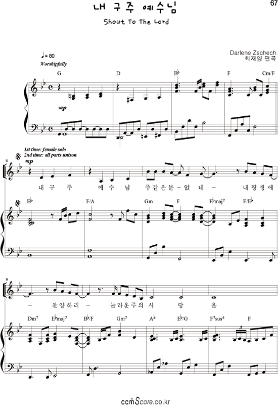 | 주를 향한 나의 사랑을 | 성가 2부 + 피아노 반주 |