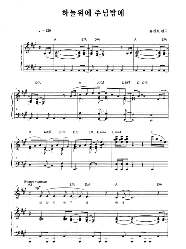 | 하늘 위에 주님 밖에 | 성가 4부 + 피아노 반주 |