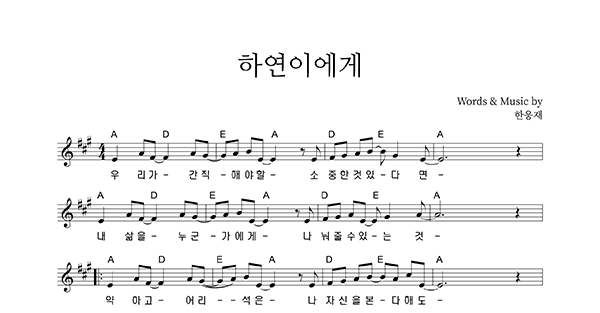 | 하연이에게 | 성가 2부 + 피아노 반주 |