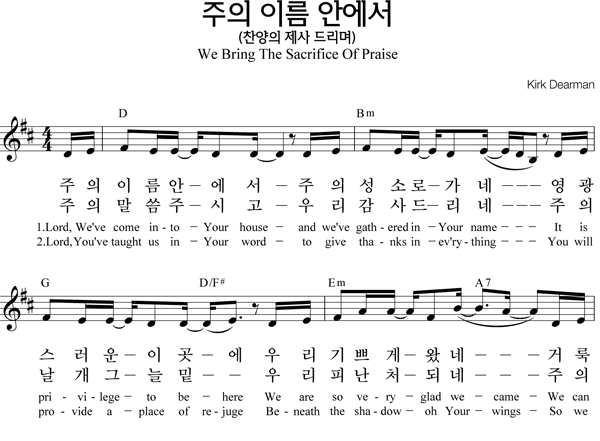 | 주의 이름 높이며 | 성가 2부 + 피아노 반주 |