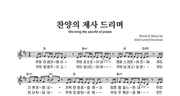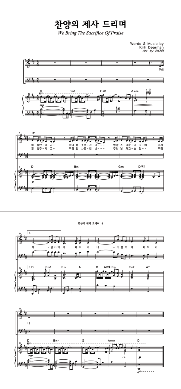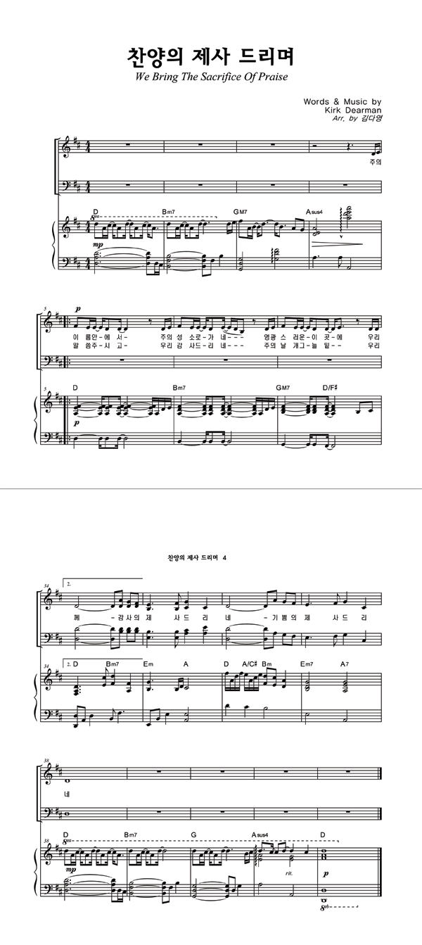 | 찬양의 제사 드리며 | 성가 2부 + 피아노 반주 |