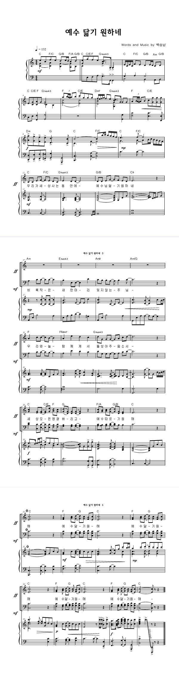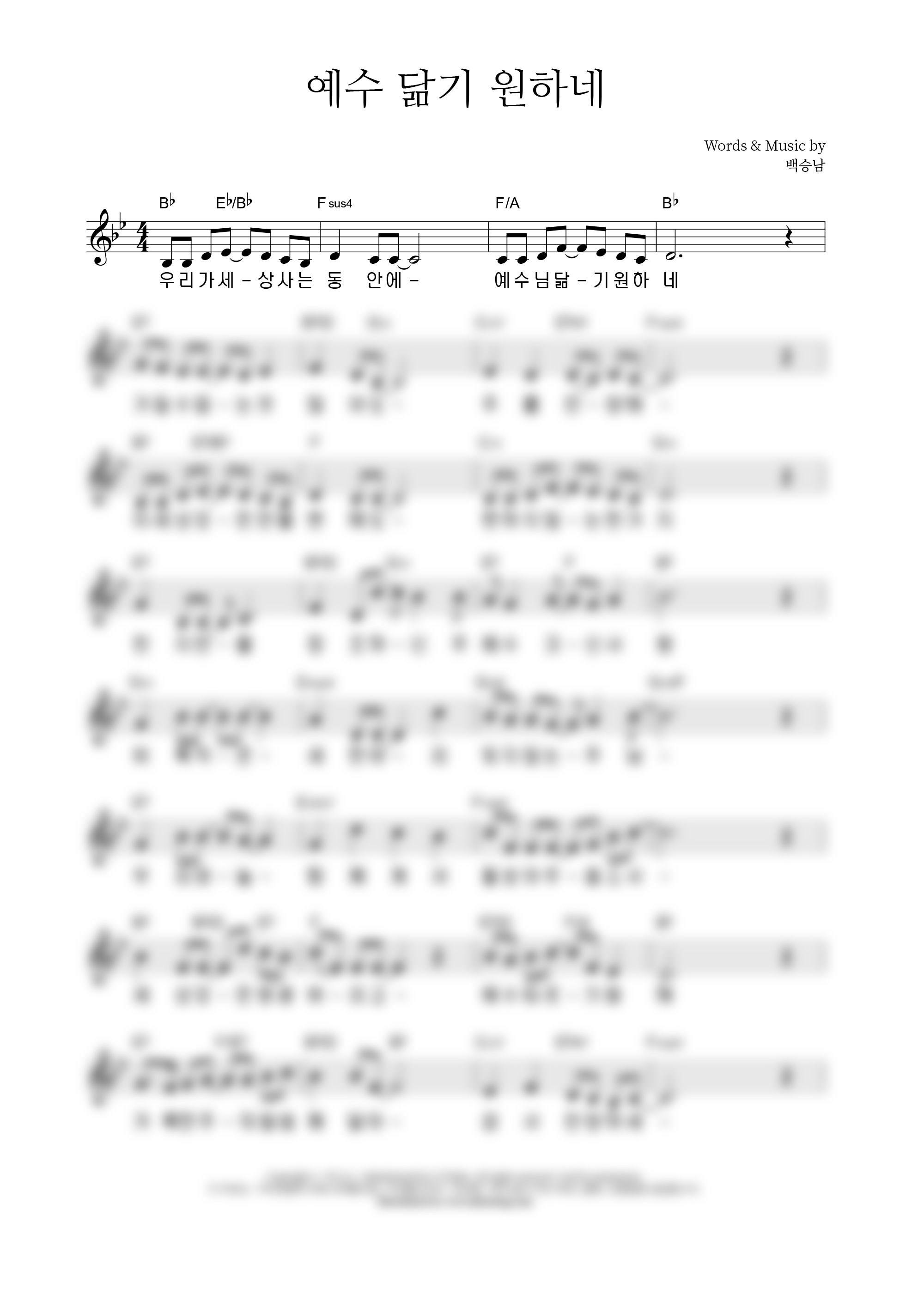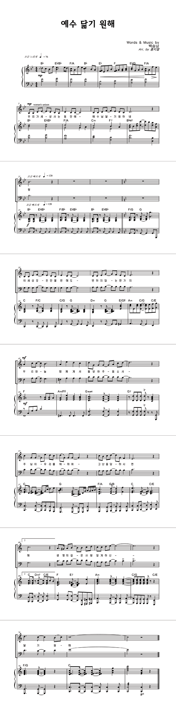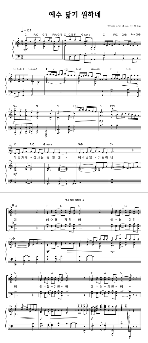| 예수 닮기 원해 | 성가 2부 + 피아노 반주 |