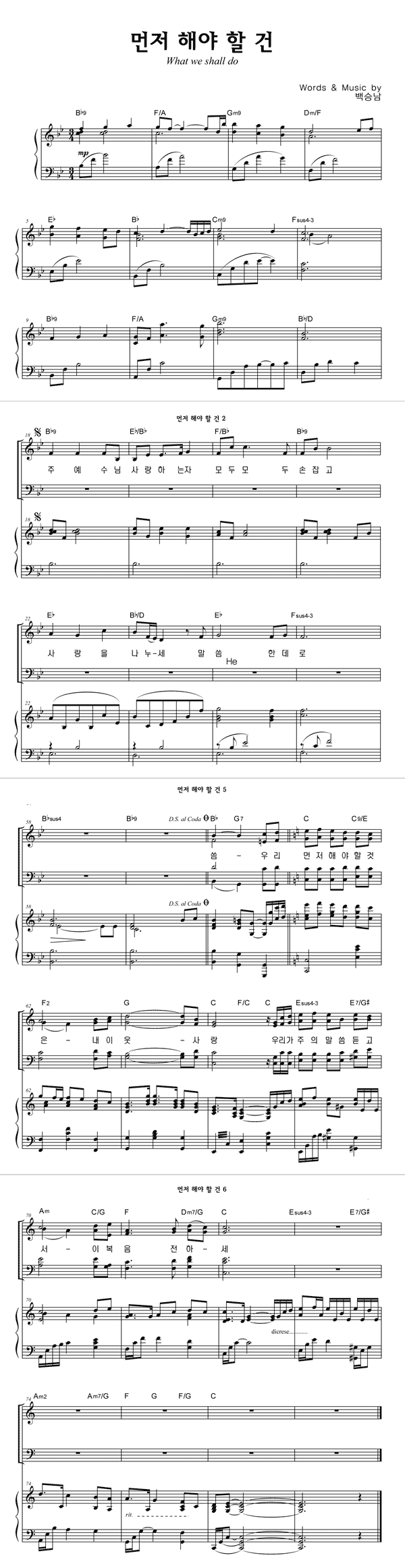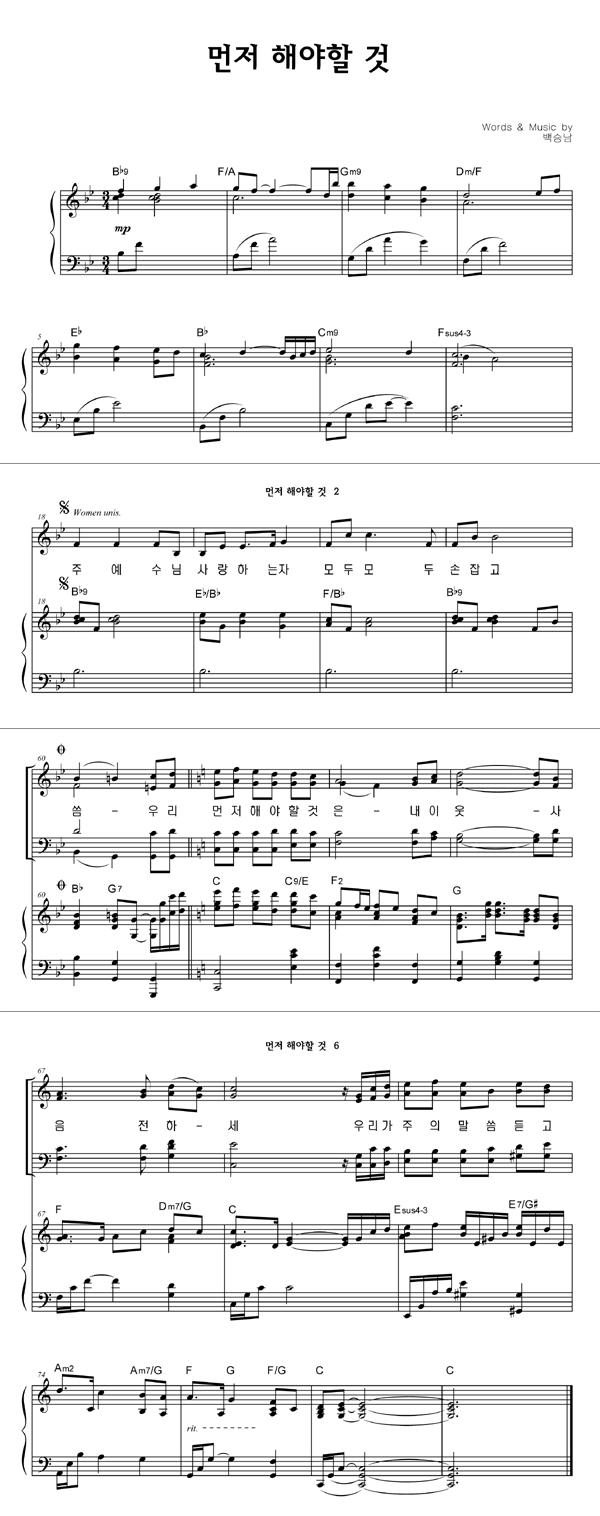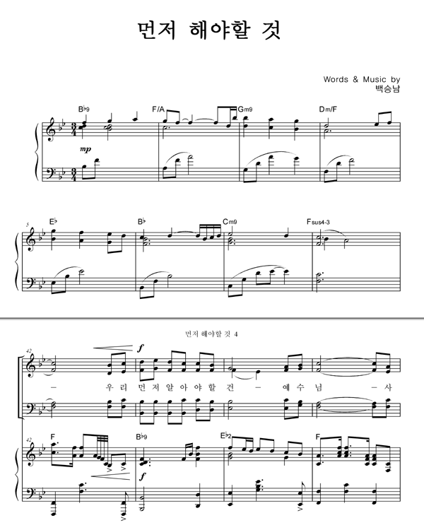 | 먼저 해야 할 건 | 성가 4부 + 피아노 반주 |