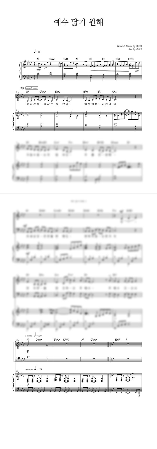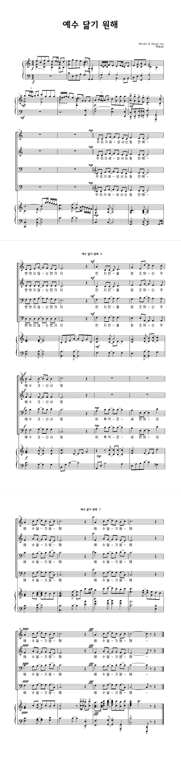 | 예수 닮기 원해 | 성가 3부 + 피아노 반주 |
