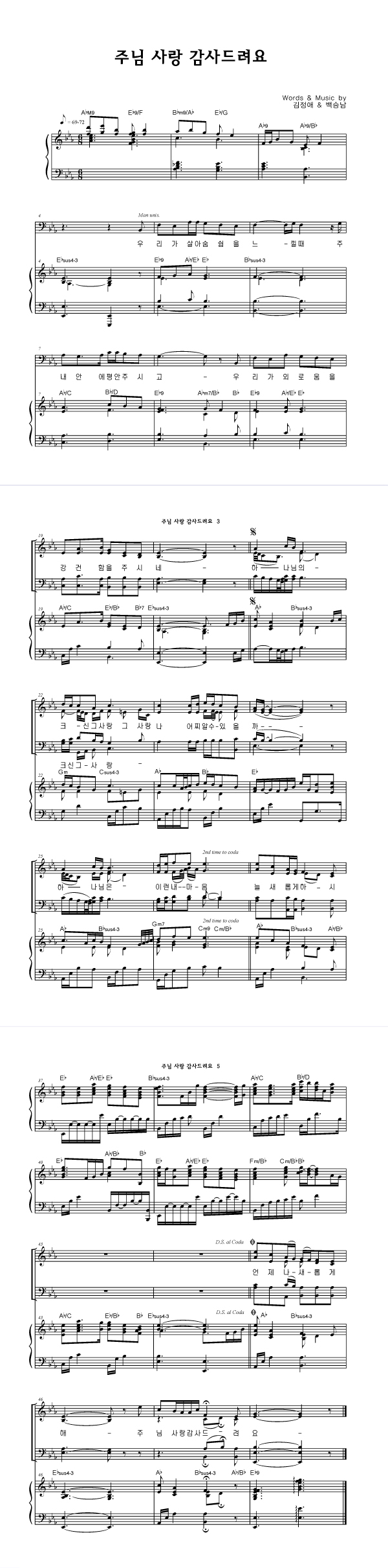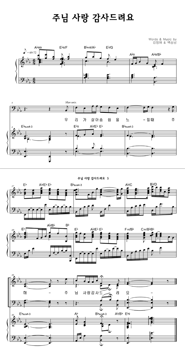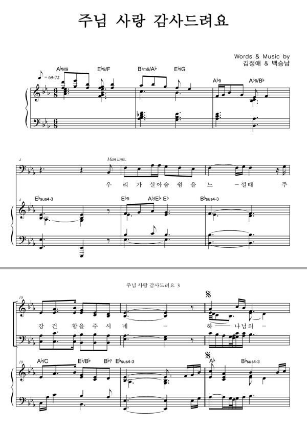 | 주님 사랑 감사드려요 | 성가 4부 + 피아노 반주 |