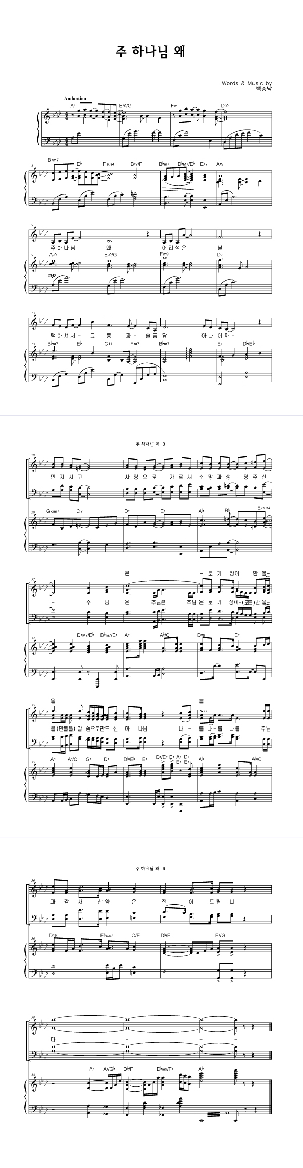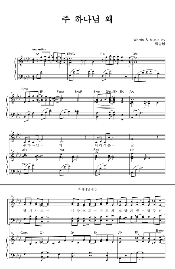 | 주 하나님 왜 | 성가 4부 + 피아노 반주 |