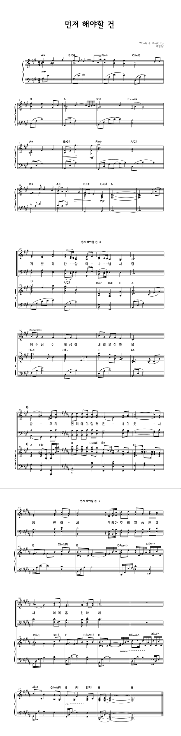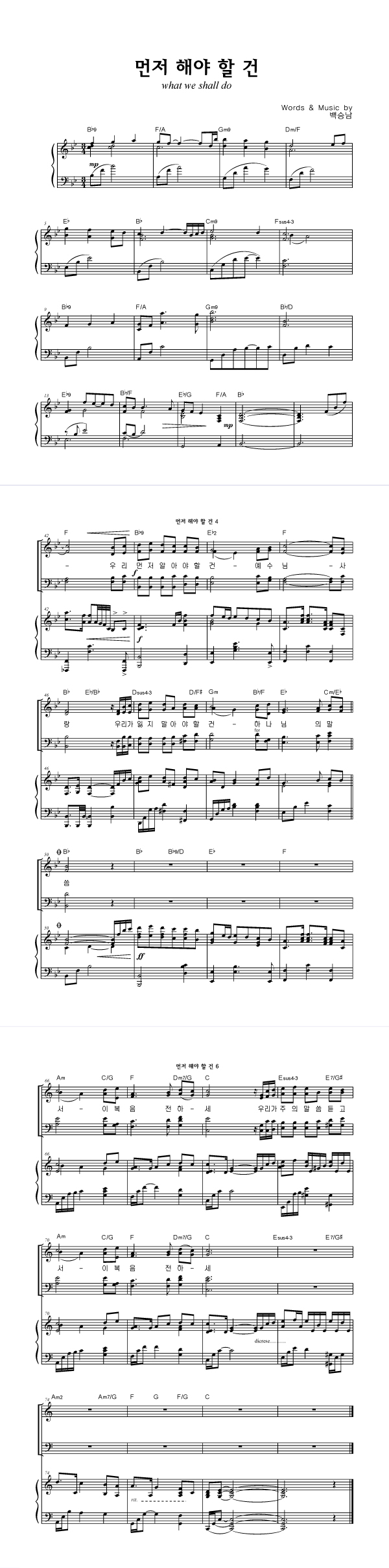 | 먼저 해야 할 건 큰글씨 | 성가 4부 + 피아노 반주 |