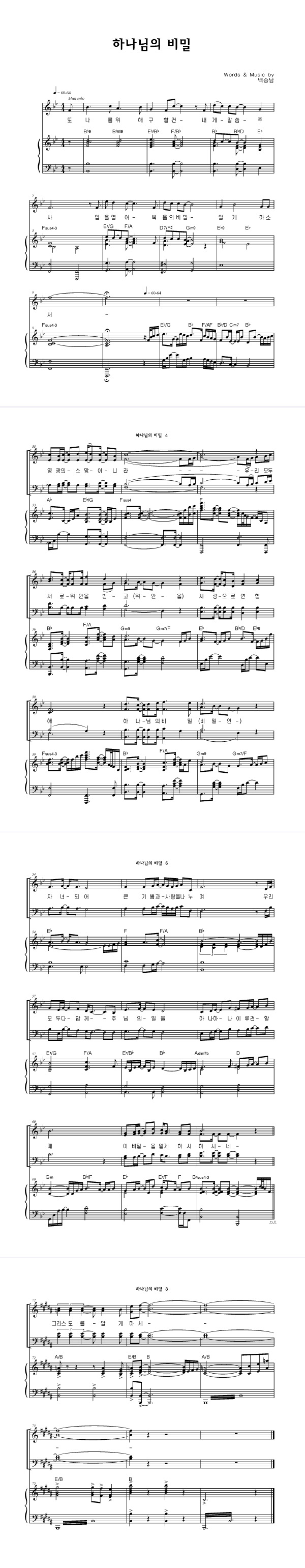 '하나님의 비밀' 의 다른 악보형식