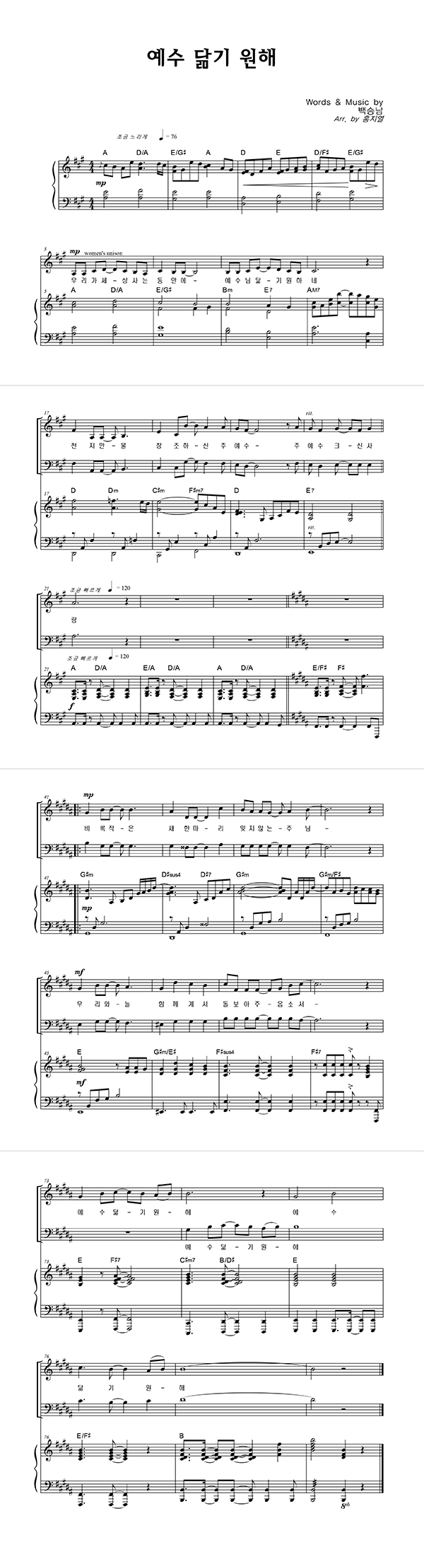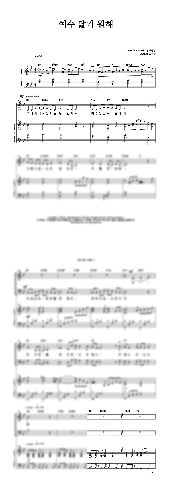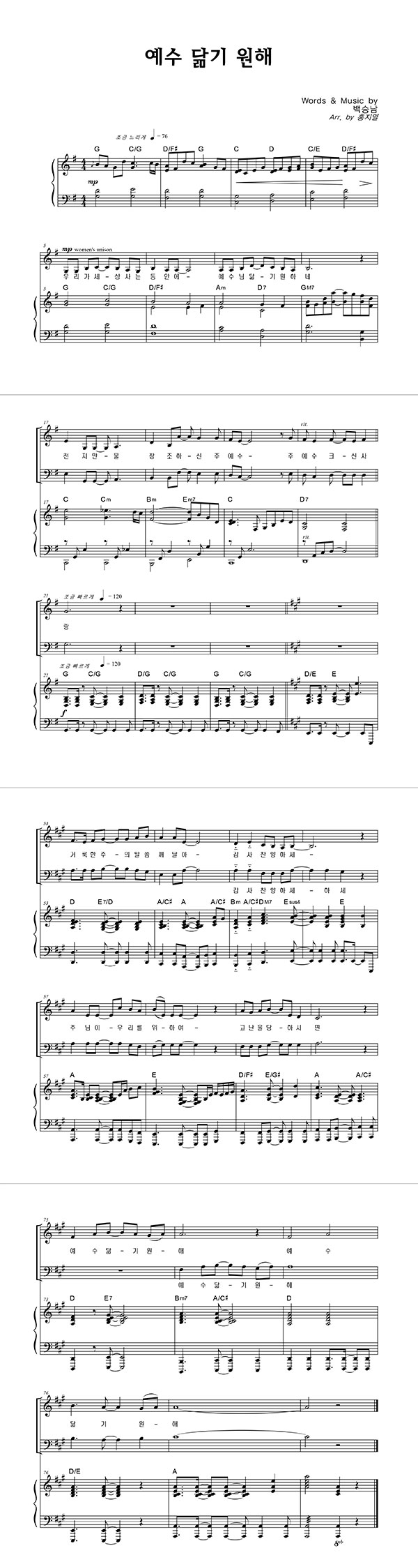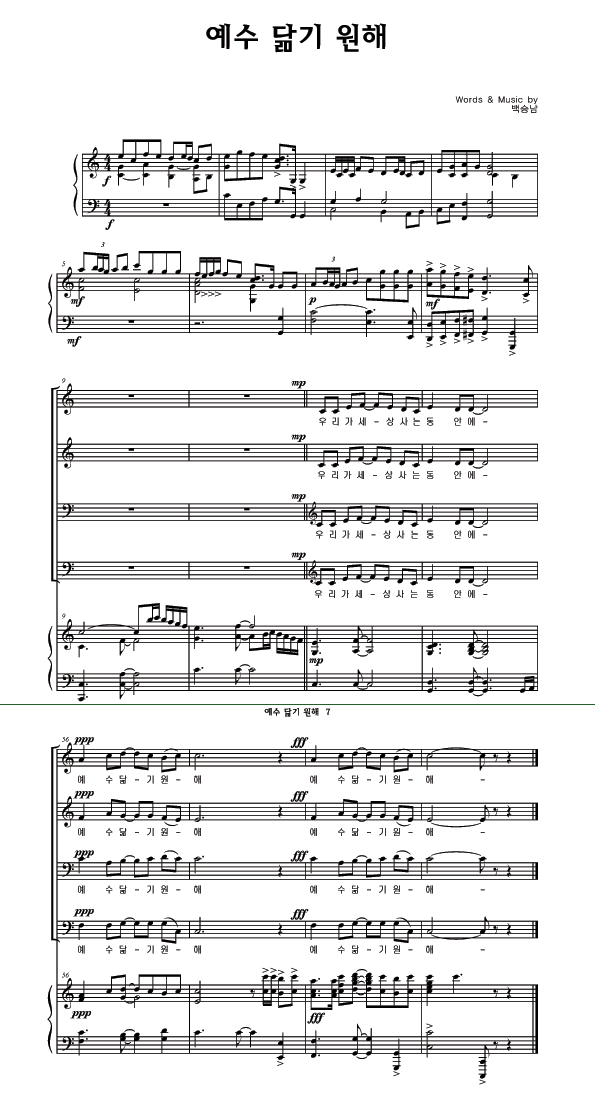 | 예수 닮기 원해 | 성가 4부 + 피아노 반주 |