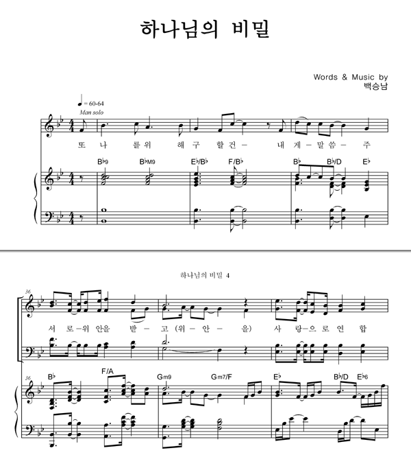 | 하나님의 비밀 | 성가 4부 + 피아노 반주 |