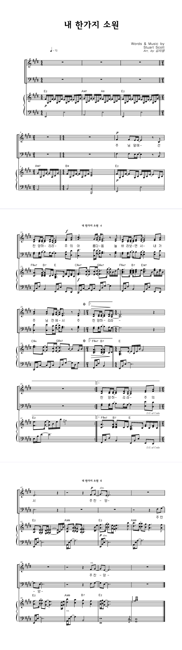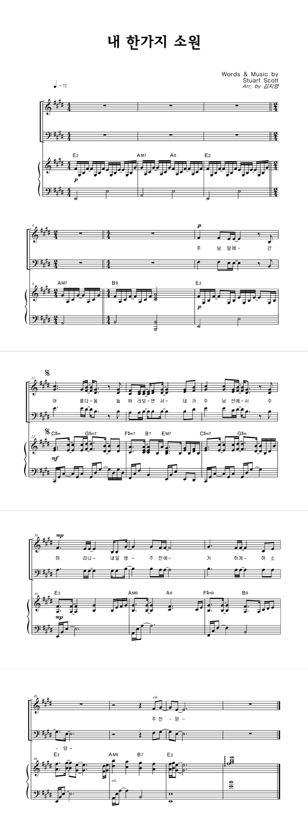 | 내 한가지 소원 | 성가 3부 + 피아노 반주 |