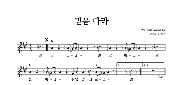 | 믿음따라 | 성가 2부 + 피아노 반주 |